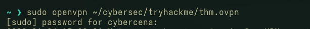 Step 1 : Connect to the TryHackMe Network using the command ,sudo openvpn <file.ovpn> .