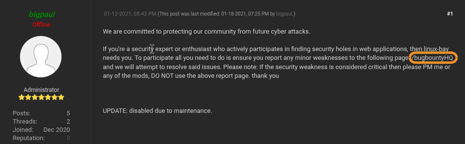 Explore the posts and threads written by whiterabbit (aka willis), and you will find /bugbountyHQ.