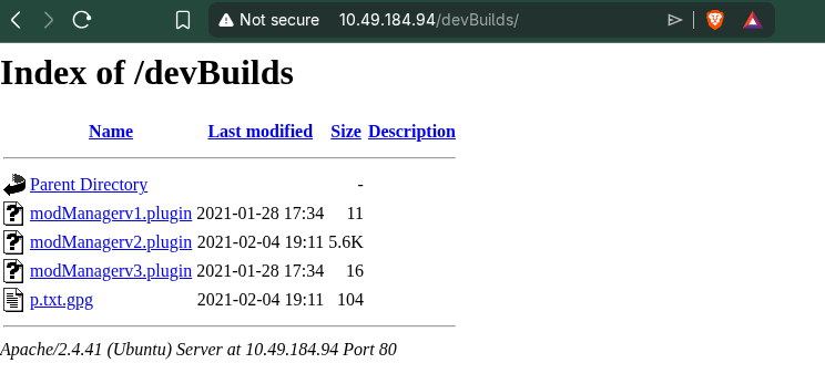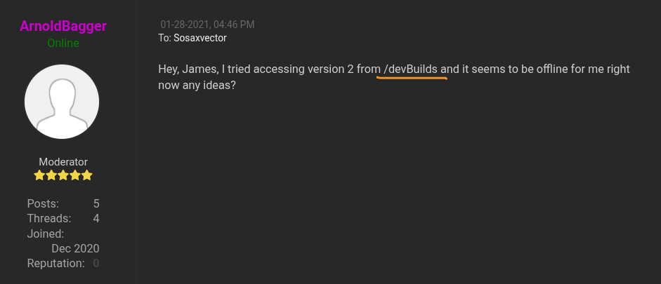 We can log in with those credentials. When we log in as ArnoldBagger, we get to know about the /devBuilds directory.
